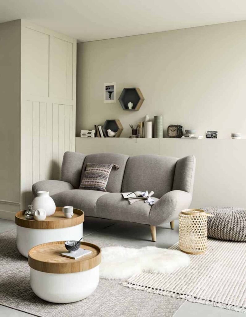Un vieux canapé n’a rien d’une fatalité esthétique. Disposez devant lui une ou deux tables basses, de préférence dans un esprit scandinave. Ces éléments accentuent l’ambiance chaleureuse mais soignée, et apportent une touche conviviale qui fait toute la différence.