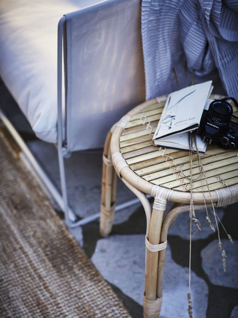 Affirmez le style de votre salon avec une table d’appoint : une table basse en bambou et rotin, par exemple, comme chez Ikea. Ce choix naturel et rustique donne du relief mais aussi du confort à l’espace. Pour personnaliser davantage, quelques accessoires bien choisis sur la table basse apporteront la touche finale.
