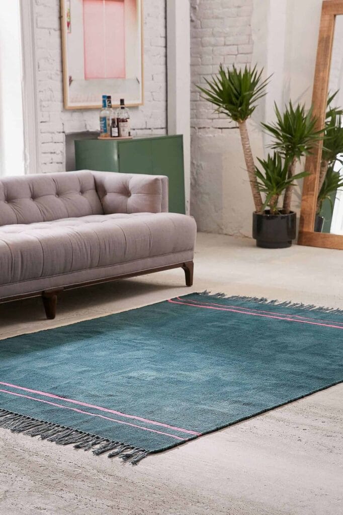 Un canapé en cuir ou en tissu peut vite reprendre du galon avec un tapis bien choisi. Privilégiez les couleurs vives ou les formes géométriques pour recentrer l’attention sur le sol. Résultat : le canapé s’efface, l’espace retrouve de l’allure.